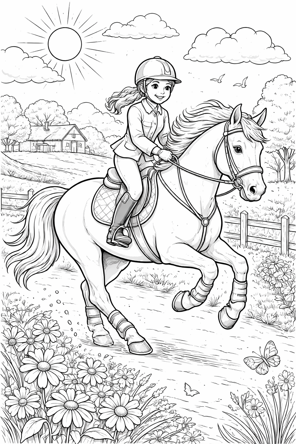 Kleurplaat paard met ruiter